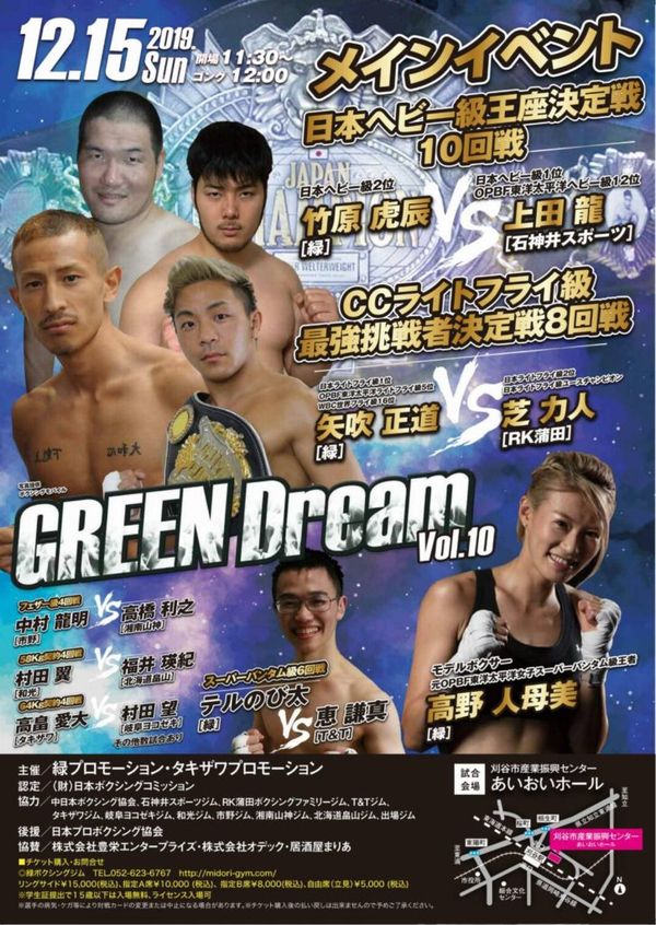 入場料:リングサイド15,000円/A指定席 10,000円/B指定席 8,000円/自由席(立ち見)5000円